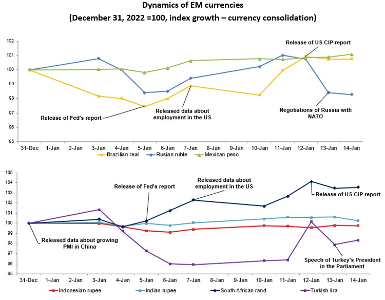 Review of selected Emerging Market currencies, January 7–14, 2022