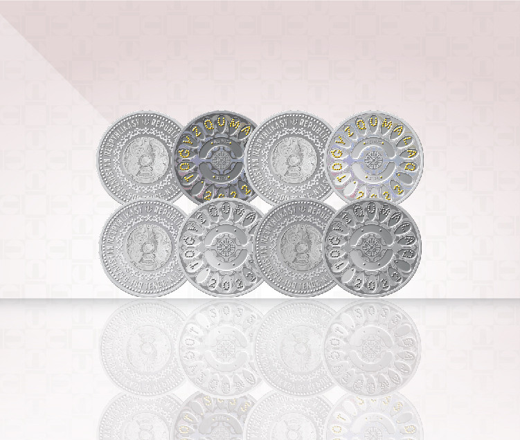 – a cupronickel alloy (CuNi 25) weighing 15 grams, with a diameter of 33 mm, brilliant uncirculated quality, a face value of 100 tenge, and a mintage of 20,000 pieces;