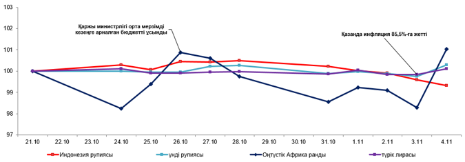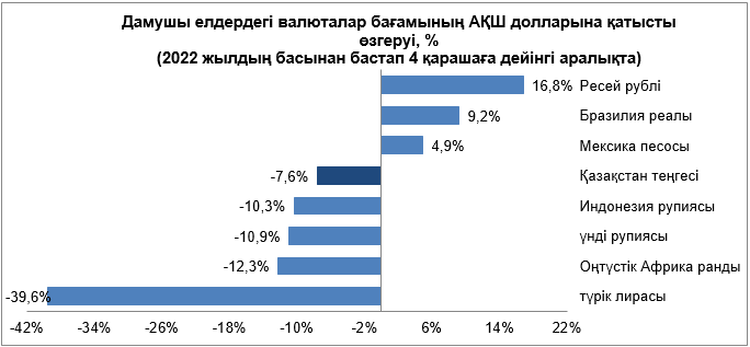 Бұл факторлар дамушы нарықтарда валюталардың әртүрлі бағыттағы динамикасын құрды.