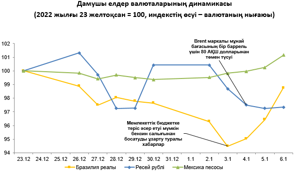 2022 жылғы 23 желтоқсан мен 2023 жылғы 6 қаңтар аралығындағы жекелеген дамушы елдердің валюталарына шолу