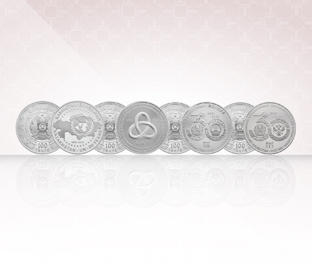 «ҚАЗАҚСТАН. БҰҰ. 30 ЖЫЛ» монеталарының бейнесі