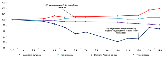 - Индонезия рупиясы ФРЖ мөлшерлемелерін арттыру циклінің жақын арада аяқталуын күту аясында 1,4%-ға (14913-тен 14705-ке дейін) нығайды;