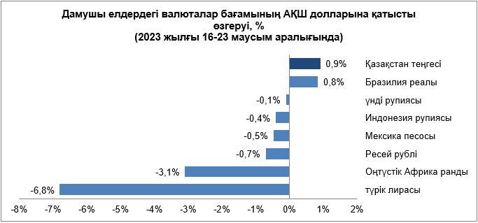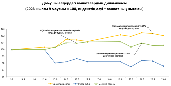 2023 жылғы 16-23 маусым аралығындағы жекелеген дамушы елдердің валюталарына шолу