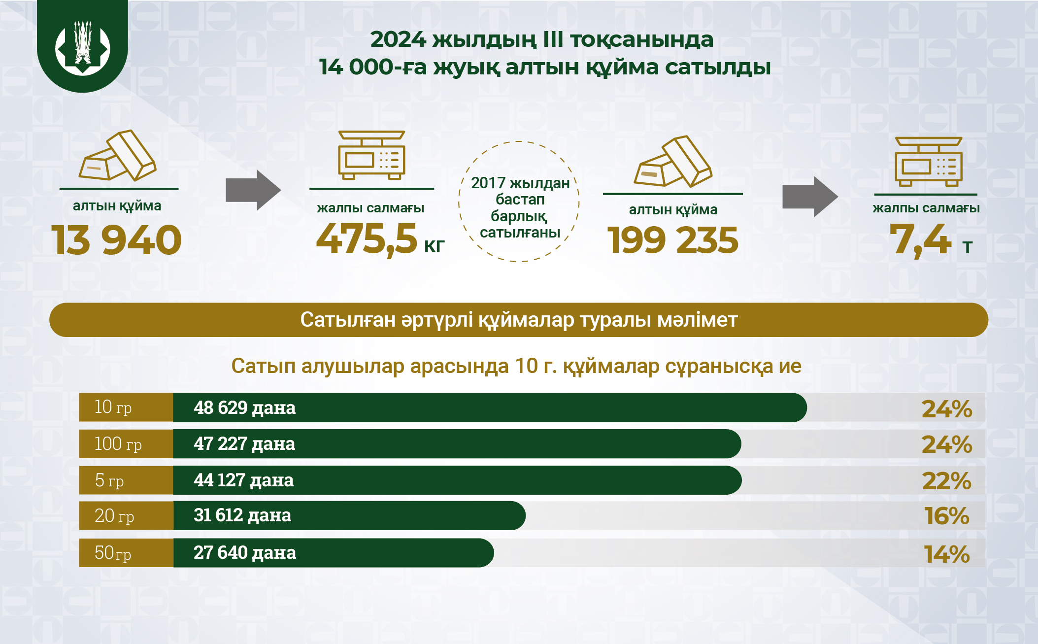 2024 жылдың III тоқсанында 14 000-ға жуық алтын құйма сатылды
