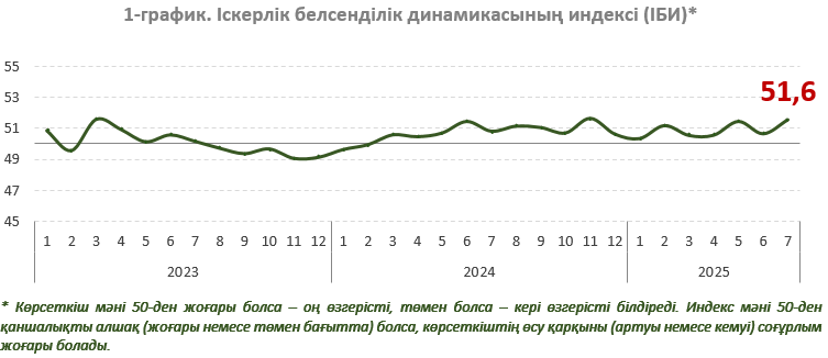 2025 жылғы шілдеде іскерлік белсенділік 51,6 (маусымда 50,7) болып, біршама жақсарды.