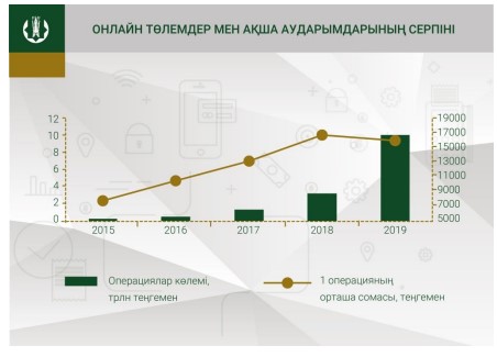 Тиісінше, қолма-қол ақшасыз операциялардың негізгі үлесі онлайн тәсілмен: 9 988,2 млрд теңге сомасына 629,2 млн онлайн операция жүргізілді, бұл қолма-қол ақшасыз төлемдер мен аударымдардың жалпы санының 52,6%-ын, көлемінің 71,1%-ын иеленеді. Осылайша, әрбір екінші қолма-қол ақшасыз транзакция банктердің интернет/мобильдік сервистері арқылы жүргізілді. Мұндай операцияның орташа сомасы 15 874 теңгені құрады.