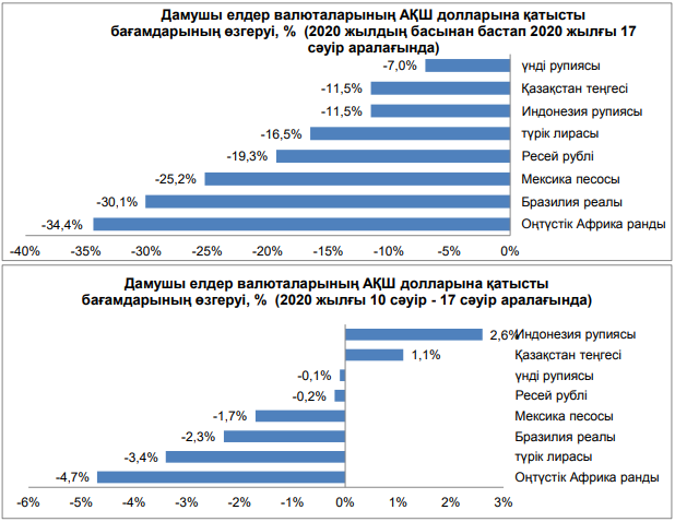 2020 жылғы 10 - 17 сәуір аралығында жекелеген дамушы елдердің валюталары бойынша шолу