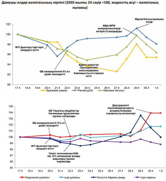 2020 жылғы 24 сәуір–1 мамыр аралығында жекелеген дамушы елдердің валюталары бойынша шолу