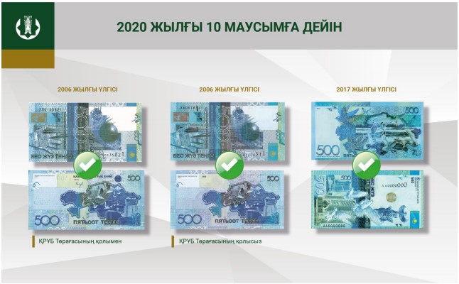 Осылайша, 2020 жылғы 10 маусымнан кейін 2006 жылғы үлгідегі номиналы 500 теңгелік банкноттар заңды төлем құралы болып табылмайды. Сонымен бірге, 2017 жылғы үлгідегі номиналы 500 теңгелік банкноттар айналыста болады және төлемдердің барлық түрлері бойынша Қазақстан Республикасының бүкіл аумағында көрсетулі құны бойынша, сондай-ақ банк шотына есепке алу және аудару үшін қабылдауға, барлық банктер мен Ұлттық пошта операторы шектеместен ұсақтауға және айырбастауға міндетті болып қала береді.