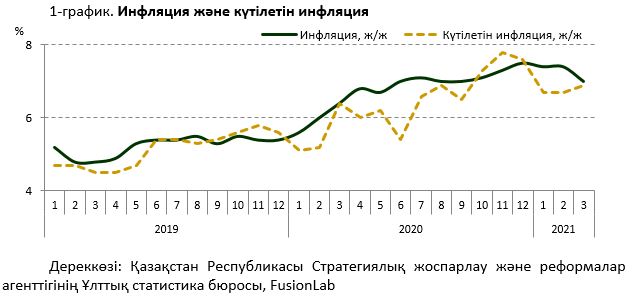 2021 жылғы наурызда халықтың пікіртерім нәтижесі бойынша бір жылдан кейін күтілетін инфляцияны сандық бағалау 6,9% болды.