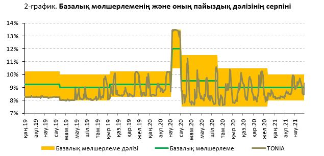 2021 жылғы 9 наурызда Ұлттық Банк базалық мөлшерлемені +/– 1,0 п.т. пайыздық дәлізімен жылдық 9,0% деңгейінде сақтау туралы шешім қабылдады.