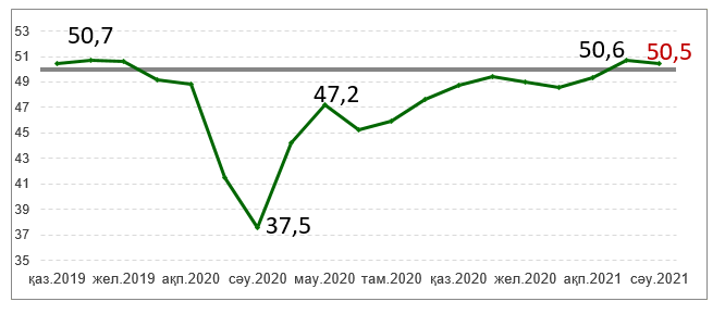 Бағалау нәтижелері бойынша, іскерлік белсенділік индексі сәуірде аздап баяулап, 50,5 (наурызда – 50,6) болды.