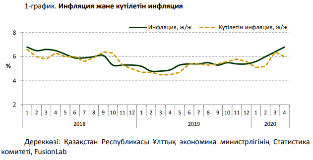 2020 жылғы сәуірдегі халықтың пікіртерім нәтижесі бойынша бір жылдан кейін күтілетін инфляцияны сандық бағалау 6,0% болды.