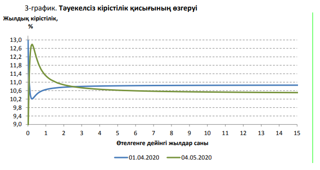 2020 жылғы мамырдың басында кірістілік қисығы аса дөңес сипатын көрсетті. Қысқа мерзімді бөлікте кірістілік өсті, бұл ретте орта мерзімді және ұзақ мерзімді кірістілік қисығы бөлігінде төмендеу байқалады. Жалпы алғанда басқа бағалы қағаздарға қарағанда мерзімі бір жылға дейін кірістілігі аса жоғары бағалы қағаздар үрдісі сақталады.