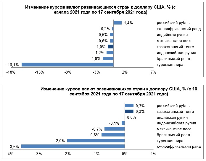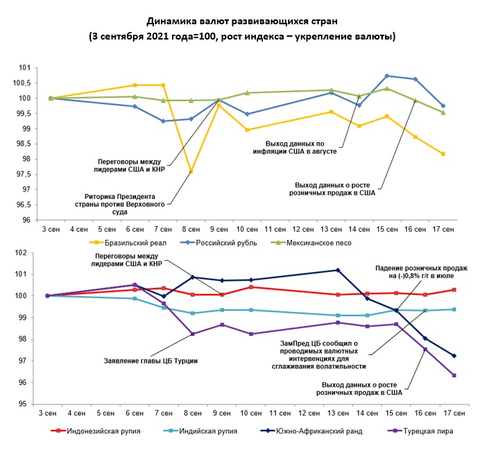 Обзор по валютам отдельных развивающихся стран с 10 по 17 сентября 2021 года