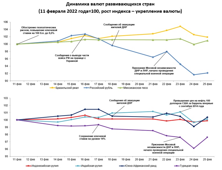 Обзор по валютам отдельных развивающихся стран с 18 по 25 февраля 2022 года