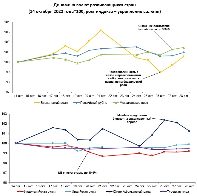 Обзор по валютам отдельных развивающихся стран с 14 по 28 октября 2022 года