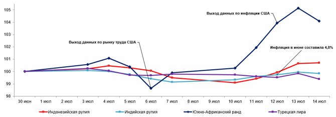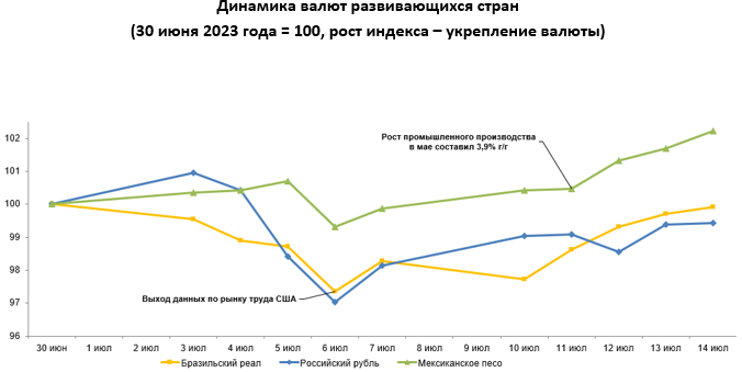 Обзор по валютам отдельных развивающихся стран с 7 по 14 июля 2023 года