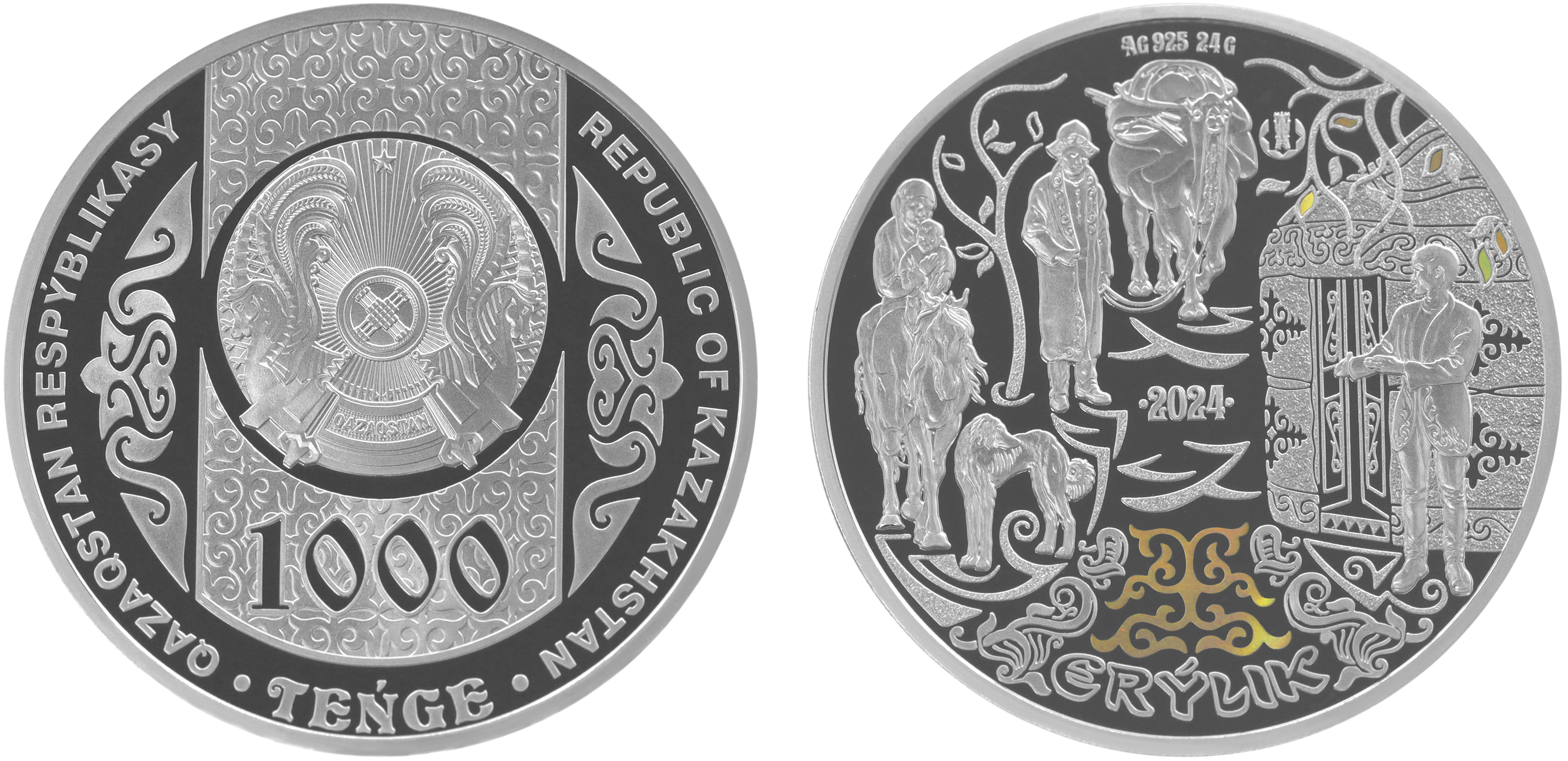- из серебра 925 пробы с применением технологии интерференционного радужного покрытия. Масса монеты – 24 грамма, диаметр – 37 мм, качеством изготовления proof, номинал – 1000 тенге, тираж – 1000 (одна тысяча) штук;