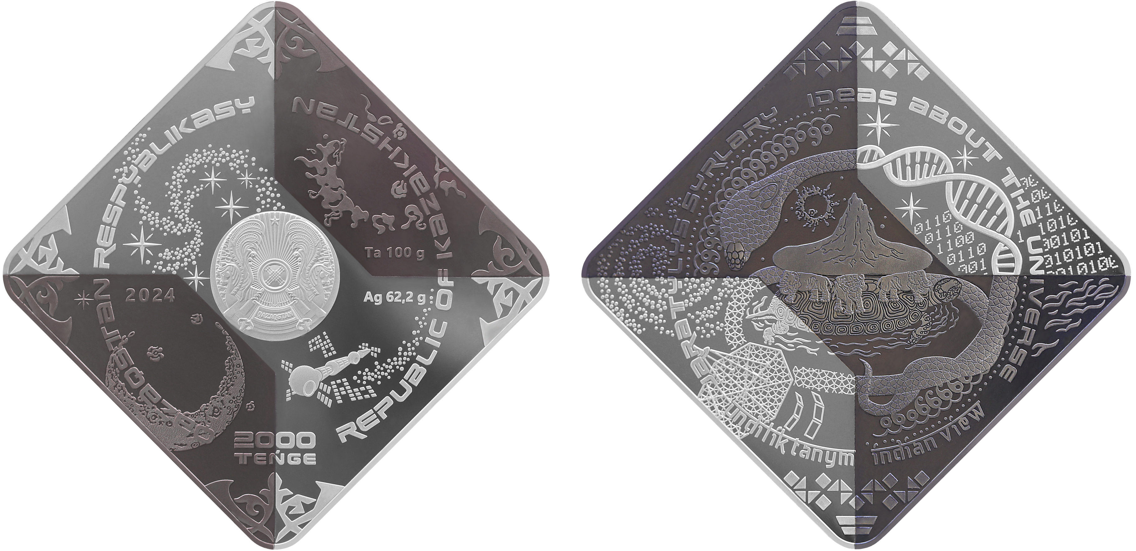 Монета ÙNDILIK TANYM изготовлена из серебра 925 пробы со вставкой из тантала. Общая масса монеты – 162,2 грамма, диаметр – 50 мм, качество изготовления – proof, номинал – 2000 тенге, тираж изготовления – 500 (пятьсот) штук.