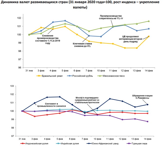 Обзор по валютам отдельных развивающихся стран с 7 по 14 февраля 2020 года