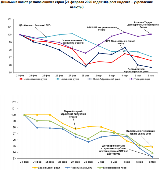 Обзор по валютам отдельных развивающихся стран с 28 февраля по 6 марта 2020 года