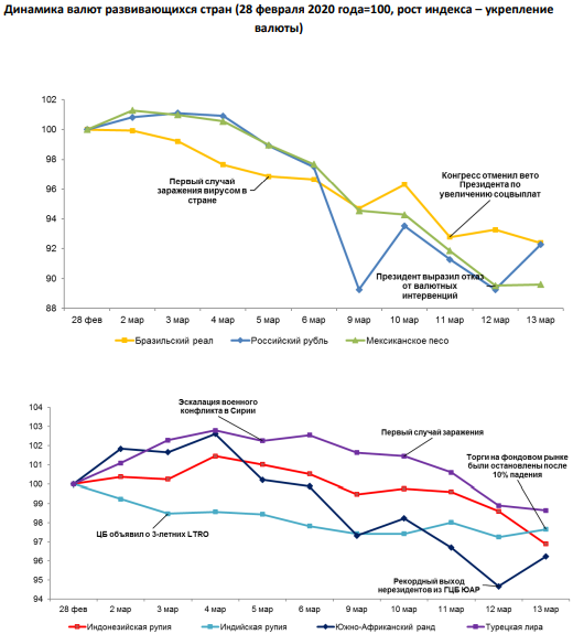 Обзор по валютам отдельных развивающихся стран с 6 по 13 марта 2020 года