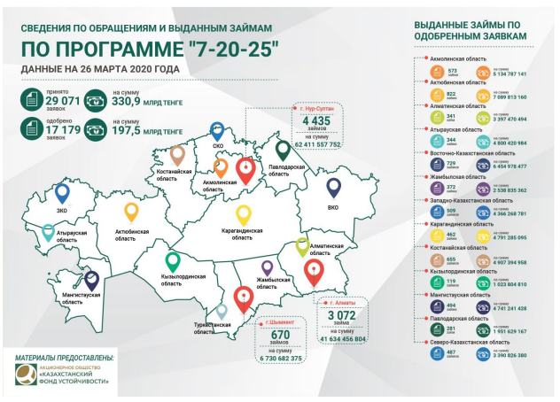 Если у вас возникли вопросы по Программе «7-20-25», просим обращаться в АО «Казахстанский фонд устойчивости» по круглосуточному номеру +7 (727) 227-20-25.