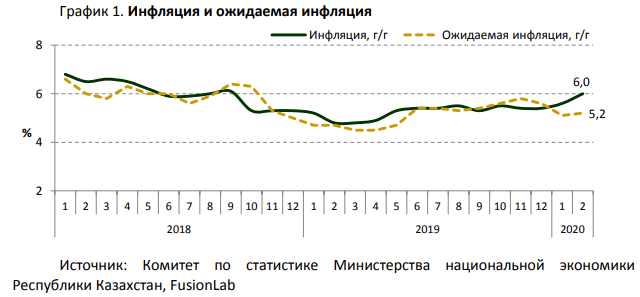 В феврале 2020 года количественная оценка ожидаемой через год инфляции по результатам опроса населения составила 5,2%.