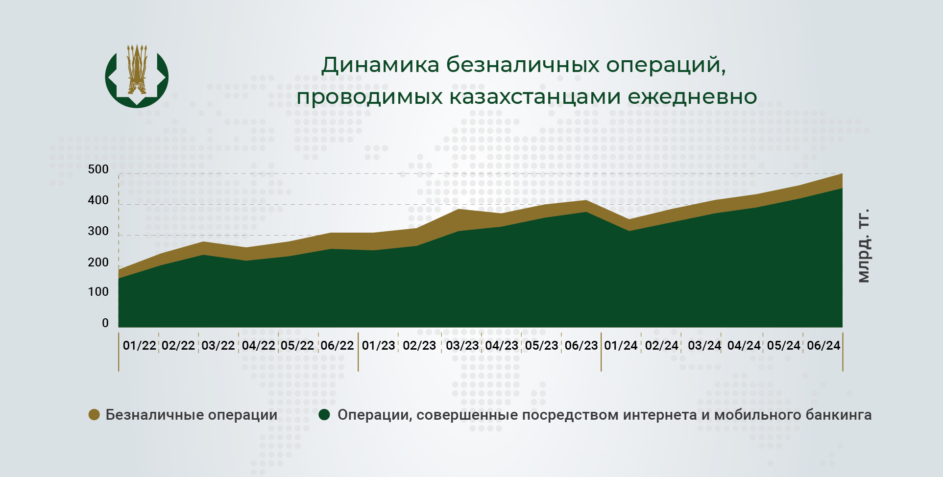 Наиболее популярным способом проведения безналичных операций является интернет и мобильный банкинг. В первые 6 месяцев этого года доля операций, совершенных казахстанцами посредством интернета и мобильного банкинга, в общем объеме безналичных операций достигла 90%. Ежедневно указанным способом проводится более 26,3 млн операций на сумму более 359,9 млрд тенге.