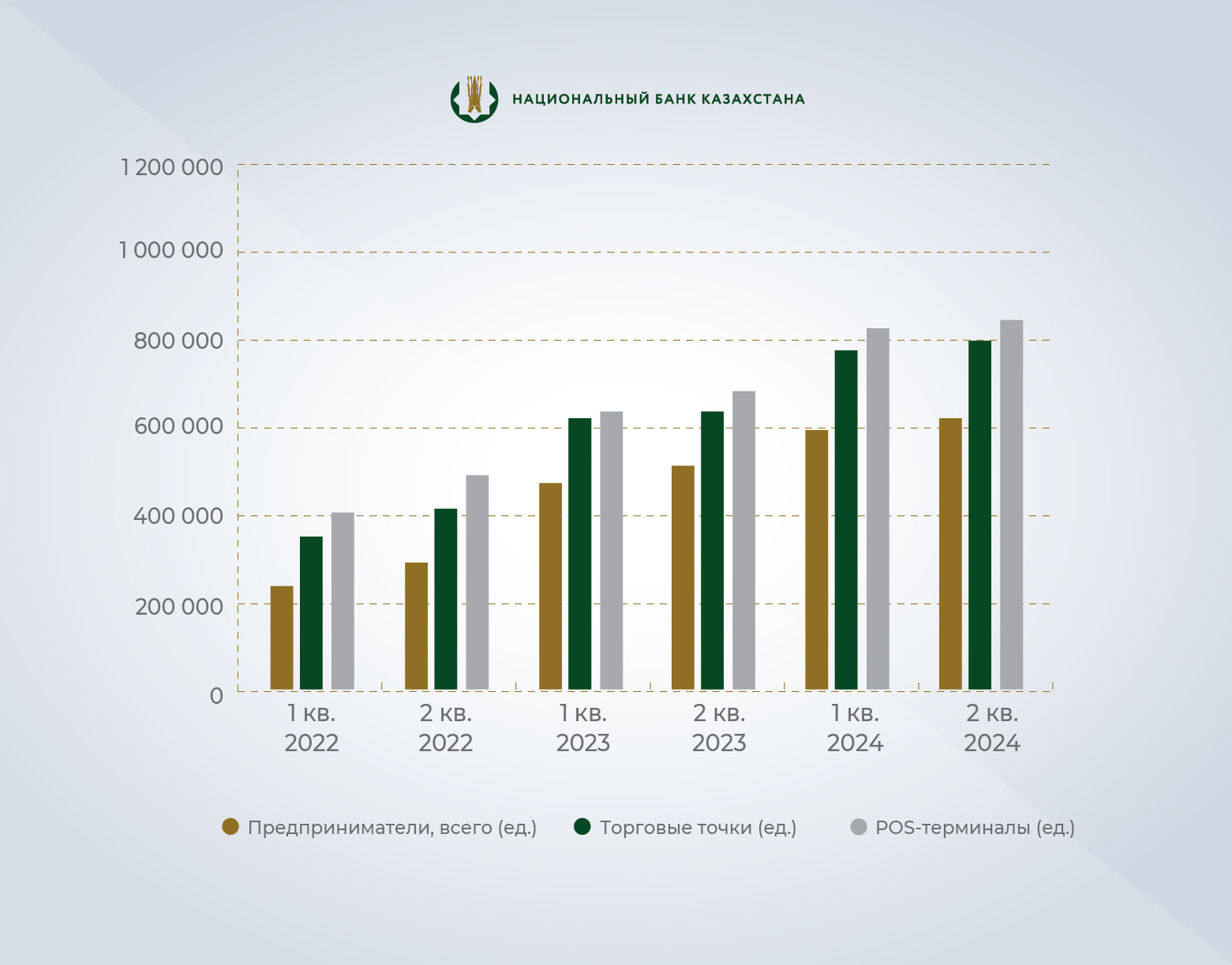 Помимо прочего, в платежной инфраструктуре число предпринимателей и торговых точек демонстрирует продолжающийся рост, увеличившись за I полугодие 2024 года на 20,5% (общее количество 846,6 тыс. единиц) и 26,1% (общее количество 1,1 млн единиц), соответственно.